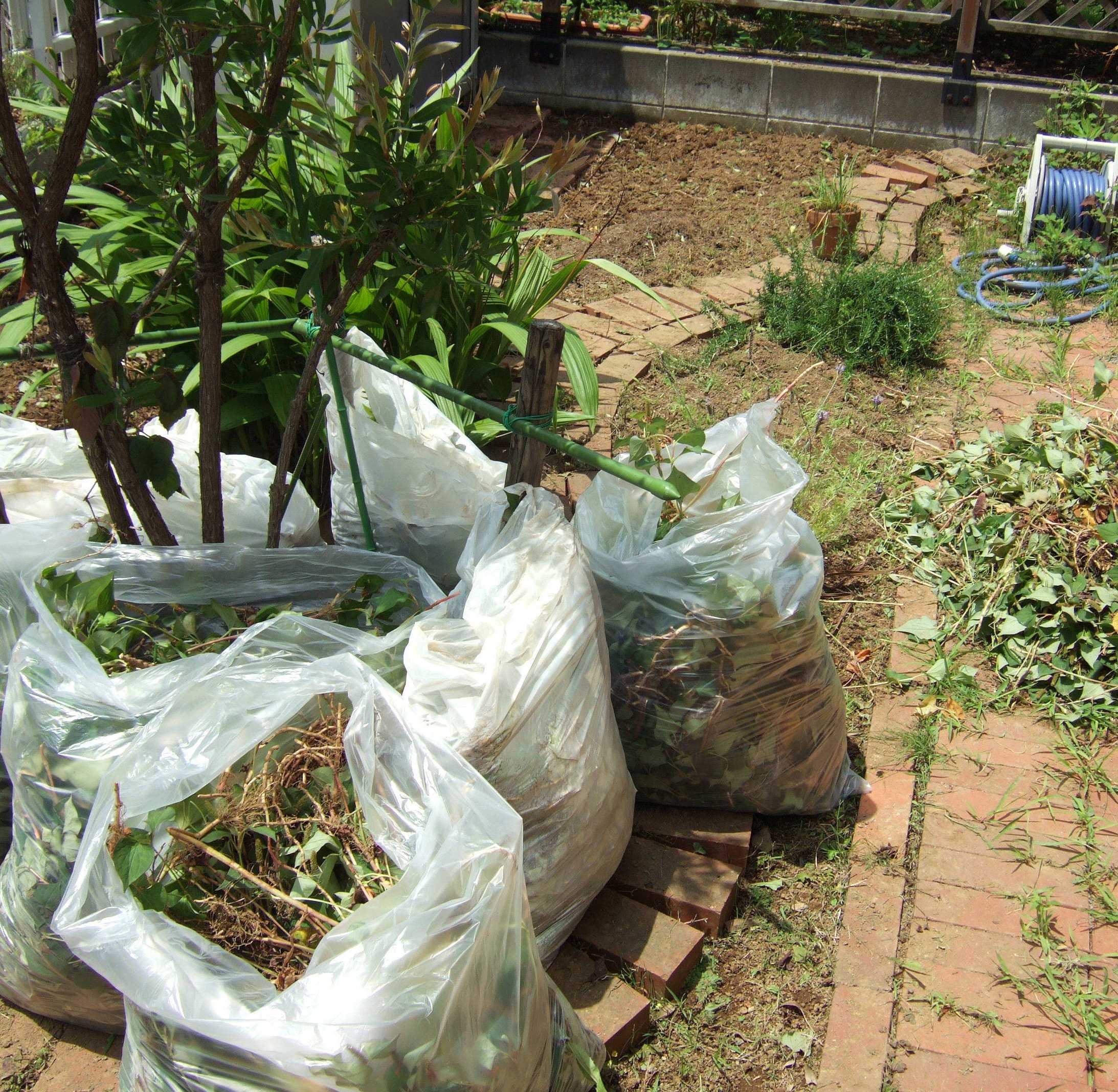 玄関タイル洗浄(左)・草取り作業(右)